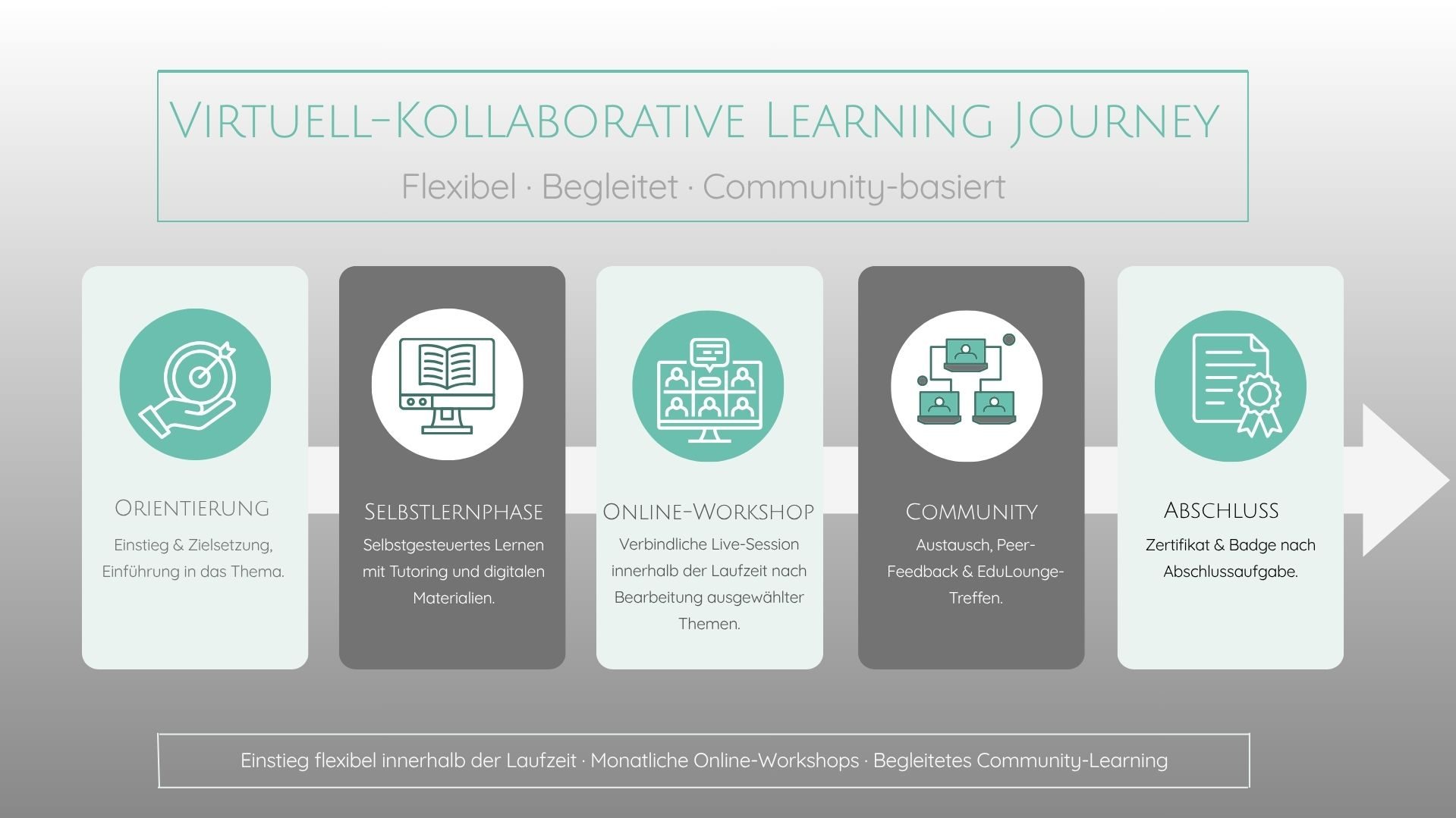 ⏳ Du entscheidest, wann du einsteigst, in welchem Tempo du lernst und wann du deine Lernreise abschließt – begleitet von einer aktiven Community.